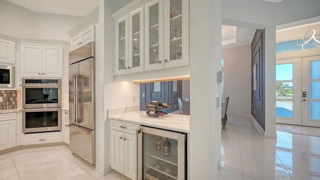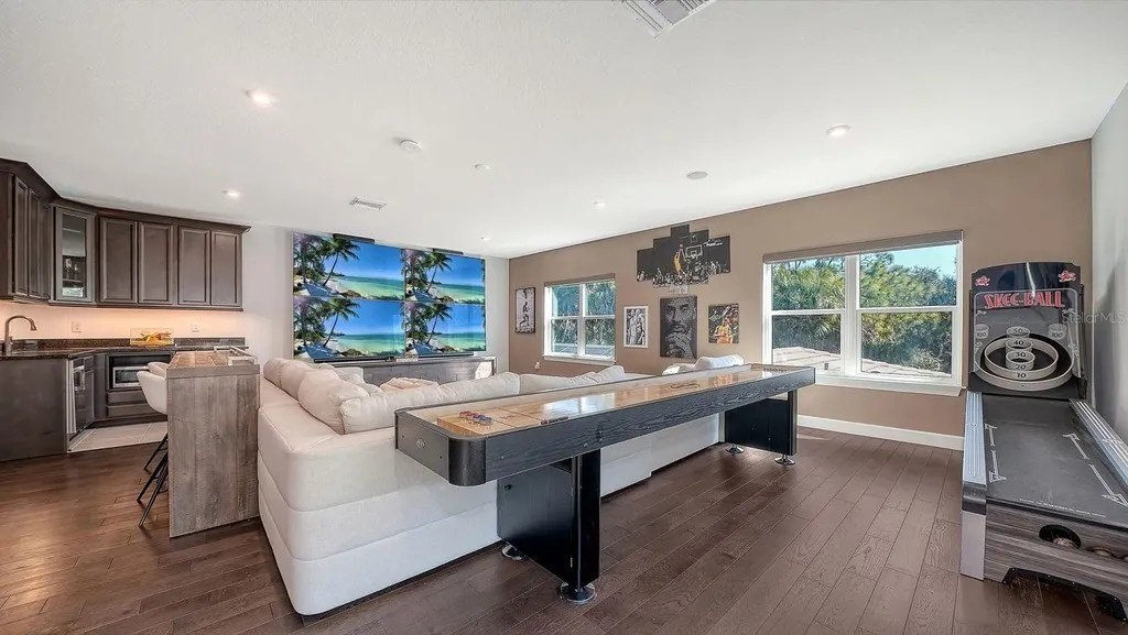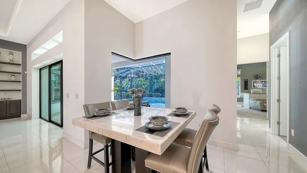 Experience elevated living in the highly sought-after Skye Ranch community of Sarasota. Perfectly positioned on Starry Night Avenue, this expanded Beacon Model offers an impressive 4,877 square feet under air across two thoughtfully designed levels, showcasing refined finishes, extensive upgrades, and exceptional attention to detail throughout. Meticulously maintained and beautifully appointed, this four-bedroom residence features four full baths and two half baths, including three private ensuite bedrooms and a fourth bedroom with Jack-and-Jill bath access. The main living areas are enhanced by soaring ceilings, elegant flooring, and expansive open spaces designed for both everyday comfort and effortless entertaining. At the heart of the home, the gourmet kitchen is a culinary showpiece, appointed with a Monogram six-burner gas range top with pot filler, double dishwashers, a separate beverage refrigerator with pass-through to the formal dining room, a generous quartz-topped island with touchless faucet, walk-in pantry, and a casual dining area overlooking the stunning outdoor living space. The main level also offers a private office and dedicated media room, providing flexibility for work, relaxation, or recreation. The spacious primary suite provides the perfect retreat to unwind, offering direct access to the lanai and pool area. Your private retreat area is complimented by two custom walk-in closets and a spa-inspired bath designed for relaxation. Upstairs, the second level is ideal for guests or multigenerational living, featuring a spacious bonus room with wet bar, beverage refrigerator, dishwasher, half bath, and a private ensuite bedroom. Outdoor living is truly resort-inspired. The expansive lanai with travertine flooring frames a graciously sized pool and spa with built-in waterfall, firepit, and sunshelf. A fully equipped summer kitchen and serene preserve views create a private, tranquil setting perfect for entertaining or relaxing year-round. Additional highlights include a spacious laundry room and a three-car garage offering ample storage. Ideally located near The HUB Amenity Center and the new Skye Ranch School, residents enjoy access to exceptional community amenities including a resort-style pool, fitness center, clubhouse, caf, dog park, scenic trails, sports courts, playgrounds, and a vibrant calendar of events. Convenient to I-75, shopping, dining, and Sarasota’s renowned Gulf Coast beaches. A remarkable opportunity to embrace refined Florida living in one of Sarasota’s most desirable communities.